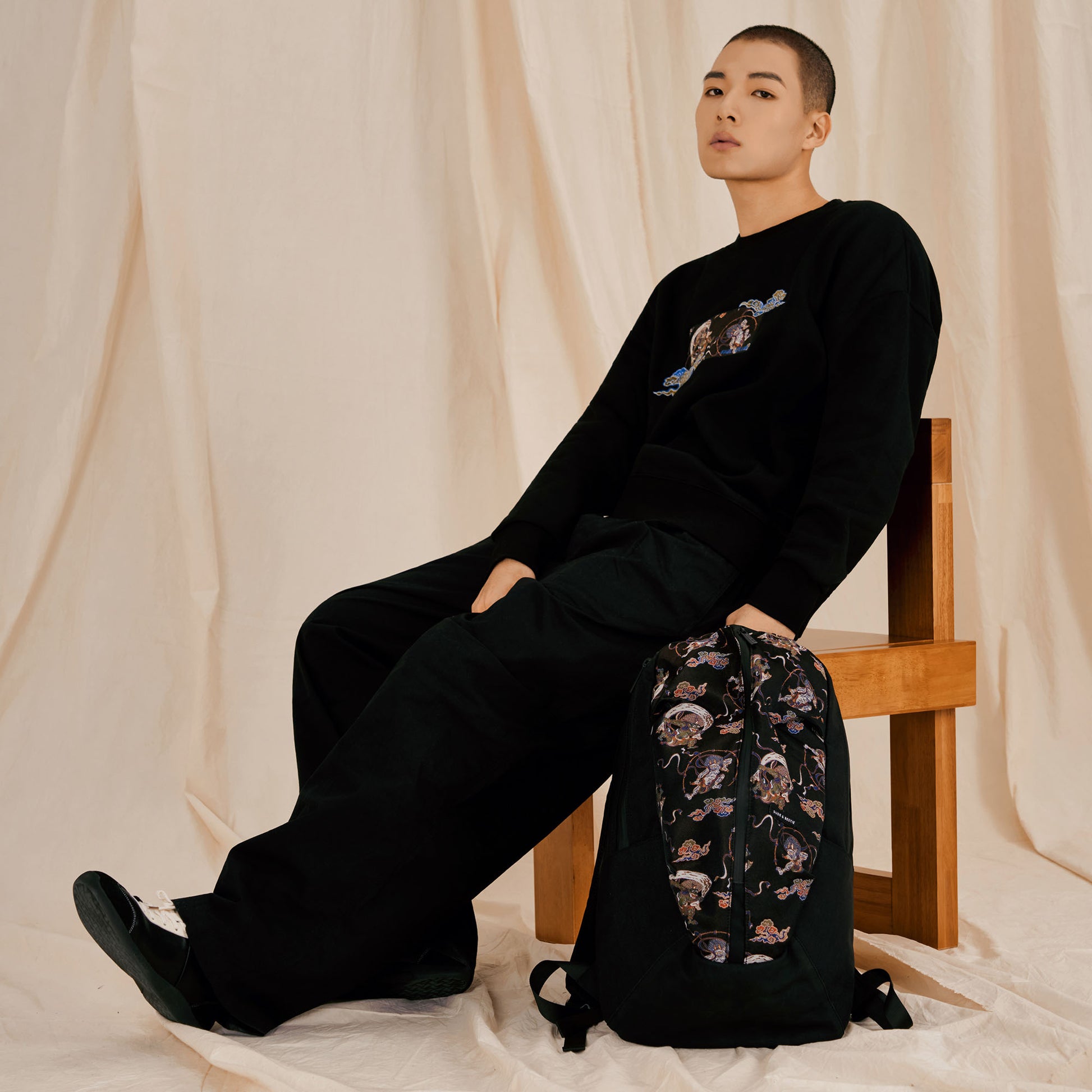 Fujin and Raijin Nishijin-ori Swetshirt (Black)