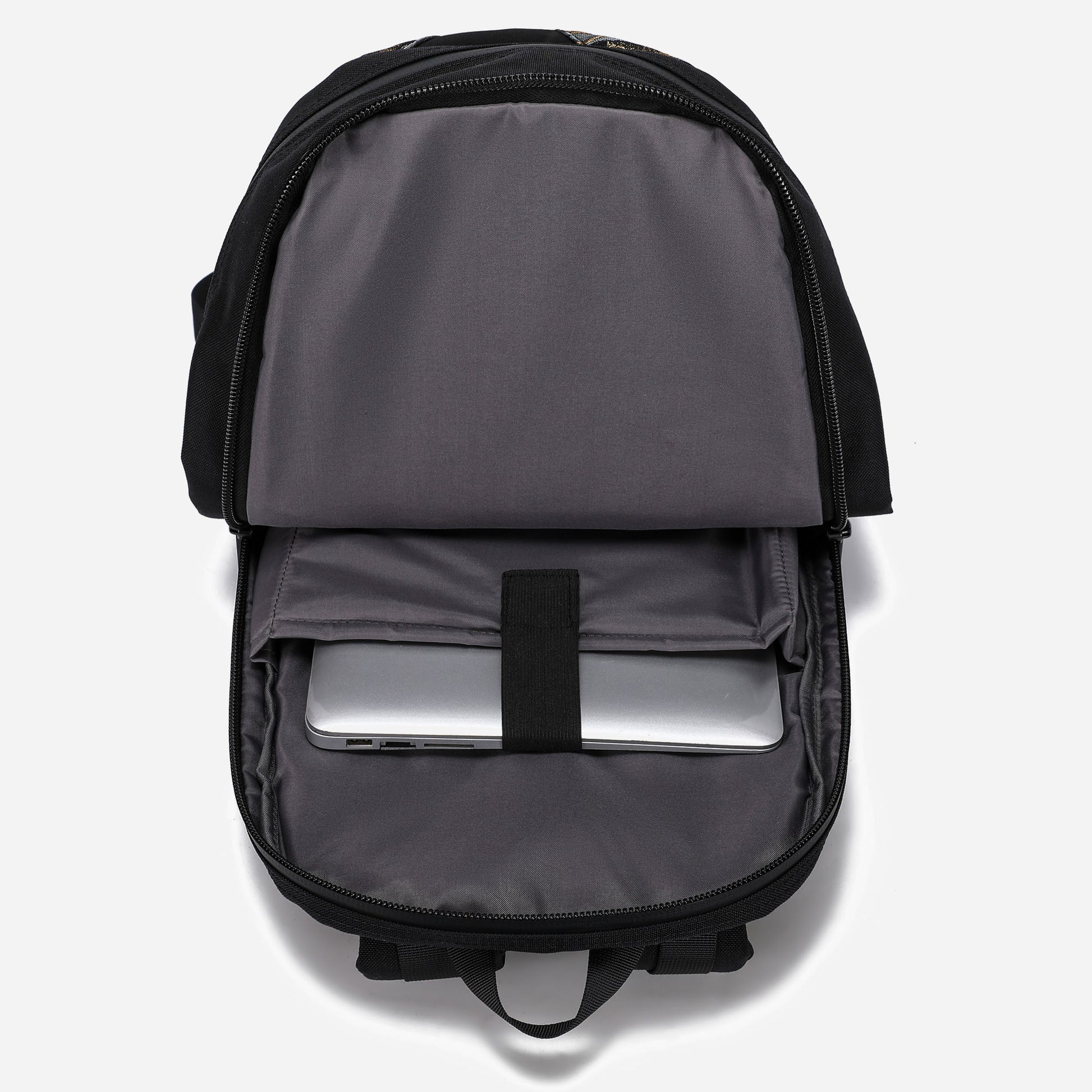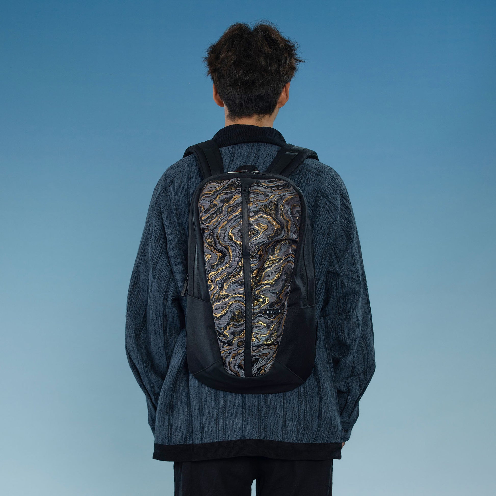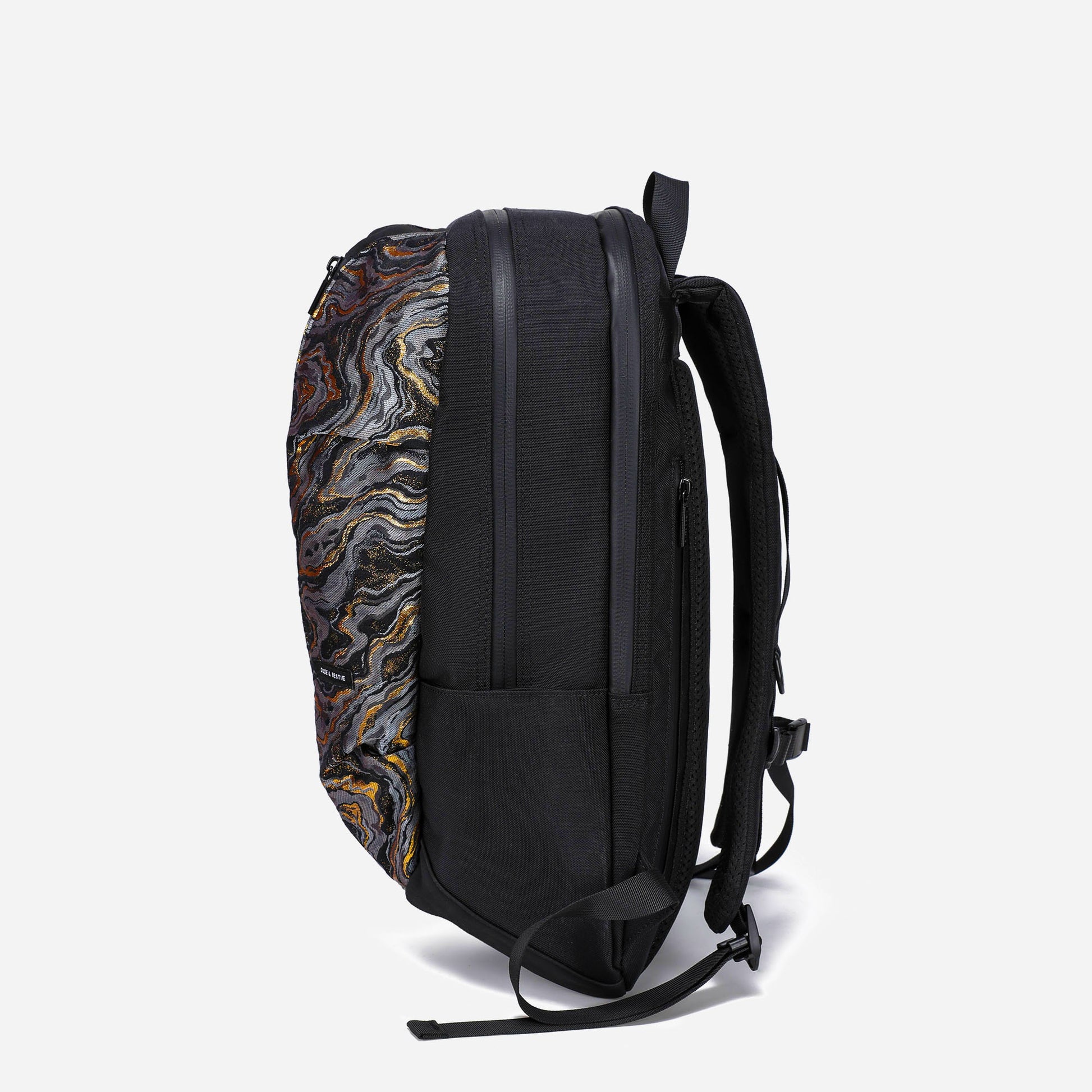 This limited edition backpack features exquisite Nishijin-ori fabric from Kyoto, adding a unique touch to its sleek, water-resistant nylon design. It fits up to a 17-inch laptop and is perfect for daily use with multiple pockets and a modern, minimalist aesthetic.