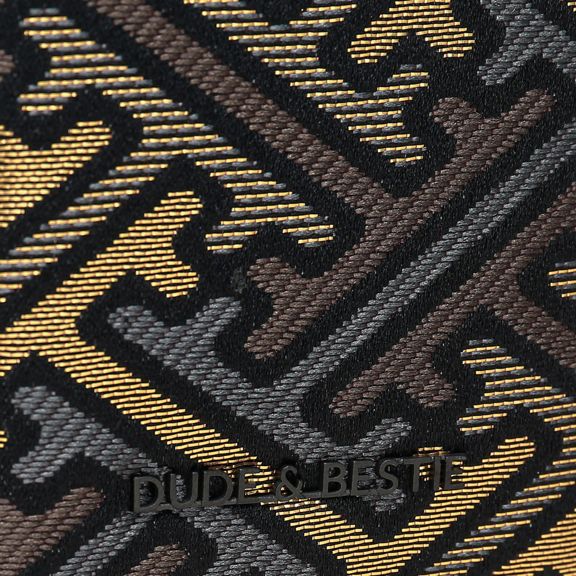 This Vertical Card Holder is crafted from luxurious Japanese Nishijin-ori and black-grained calfskin for a fashionable and functional look. With three card slots and a transparent badge window, you can easily organize and store your ID and credit cards. The adjustable and removable shoulder strap makes it comfortable to wear around your neck or hook to a bag.